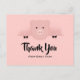 Um cartão-postal de agradecimento com um desenho da face de um porco rosa fofo. Erguido por seus cascos negros fendidos e espiando por cima de uma mesa. Desenho fofo e caprichoso. Definido em um fundo rosa com corações desbotados. Nome personalizado na frente e mensagem personalizada no verso.