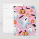 Fantasma Bonito, morcegos e abóboras em fundo rosa.