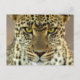 Leopardo feroz com belas marcas faciais, perfurando olhos amarelos e um olhar intenso. presente de excelente para quem ama os grandes felinos.