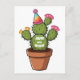 Cartão Postal figo-da-índia em vaso com chapéu de aniversário