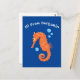 Este lindo cavalo marinho está cruzando nas correntes oceânicas. Desenhado no estilo de ilustração de desenho animado divertido.