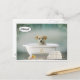 Cachorro sentado em uma banheira de banho esperando tão bom para ter sua lavagem para a semana