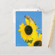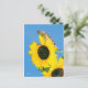 Um cotovelo é empoleirado sobre um girassol com um céu azul vibrante.