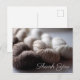Uma fotografia aproximada de fio de alpaca cor creme bege marrom neste cartão postal de agradecimento.