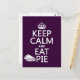 Aqui se lê Manter Calmo e Comer Pie, no estilo do clássico manter calma poster. Há uma silhueta de um delicioso torta de cheio ao lado das palavras. Este é um design excelente divertido para todos que amam torta, e o usa como medida de emergência. Presentes maravilhosos para padeiros, cozinheiros e amantes de tortas.