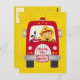 Soe o alarme para o seu aniversariante! Design de aniversário personalizado e bonito para rapazes com um bombeiro sorridente a conduzir um caminhão de bombeiros acompanhado pelo seu adorável cão-fogo Dalmaciano. O texto na placa diz BIRTHDAY BOY. Fundo da parede de tijolos desarrumada. Torne-o único com seu próprio ano de aniversário e texto personalizável.