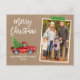 Pneu Moderno Escova Rótulo Aquarela Vintage Caminhão Vermelho com Árvore de Natal Feliz Natal Família Foto Postal - Papel Kraft Rústico, Fita Adesiva Verde para artesanato com floco de neve