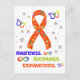 Envie uma mensagem que seja importante com este cartão postal de conscientização de alta definição ousado e elevador. Apresentando uma fita laranja vibrante cercada por símbolos de diversidade cognitiva — engrenagens, raios, peças de quebra-cabeça e lâmpadas — essa design celebra o brilho e a energia das mentes neurodivergentes. O poderoso trio de palavras — consciência. Aceitação. Empoderamento.—se orgulhosamente sob a fita, aliado a símbolos infinitos multicoloridos para representar a inclusão e o suporte ao longo da vida.