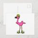 Cartão Postal Flamingo como Patinador com Patins e Capacete