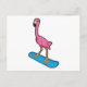 Cartão Postal Flamingo como Snowboarder com Snowboard