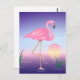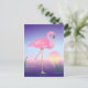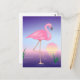 Ilustração cor-de-rosa do flamingo. O pássaro cor-de-rosa brilhante está estando na água cercada por plantas.