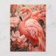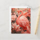 Cartão Postal Flamingo e Flores Rosa
