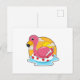 Cartão Postal Flamingo nadando com Lifebuoy