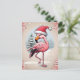 Cartão Postal Flamingo vestindo chapéu de Santa ao lado da árvor