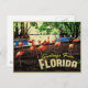 Uma coleção divertida de flamingos cor-de-rosa na Flórida é um símbolo perfeito deste ensolarado estado sulista. A imagem diz "Saudações da Flórida".