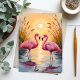 Cartão-postal de pintura de animais solares, cor-de-rosa, Flamingos