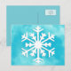 Cartão Postal Floco de neve branco sobre fundo de aquarela azul