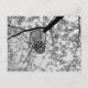 Cartão-postal preto e branco de uma lanterna pendurada numa cerejeira florescente.