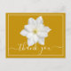 Cartão Postal Flor de Clematite Branca Fundo Mostarda Obrigado