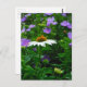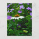 Cartão Postal Flor de Cone branca, flores roxas e mariposas
