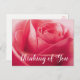 Brilhar o dia de alguém com uma rosa rosa romântica. Este cartaz floral encantador apresenta uma rosa rosa-rosa macia com um pensamento sobre sua saudação impressa em uma letra rico de script branco. Você pode personalizar o cartão para qualquer saudação e escrever uma mensagem pessoal no verso. Pensando em vocês, cartões postais florais são perfeitos para * uso pessoal - olá, amor, amizade, saudades, anotações bem em breve * presentes de papelaria - enrole uma fita em volta de alguns cartões * negócios * angariadores de fundos.