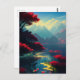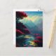 Cartão Postal Flora Vermelha Vibrante e Montanhas Majestosas