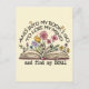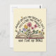 Este cartão-postal floral bonito e colorido mostra as palavras "E no meu livro eu vou ao perder da minha mente e encontro minha alma" com bonito livros coloridos cercados por flores. É um presente perfeito para amigos e familiares de bibliotecários e amantes de livros.