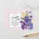 Púrpura elegante e botânica e floral de aquarela amarela em cartão-postal de convite de aniversário surpresa cor-de-rosa.