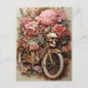 Colagem de flores e folhas com um crânio velho acoplado à bicicleta. Bonito para o Dia das Bruxas, dia dos mortos ou qualquer hora do ano. Perfeito para desacoplamento de móveis, jornalismo de lixo e outras artes e artesanatos.
