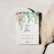 Este floral tropical colorido salva o cartão postal é perfeito para um casamento de destino. Os design ilustram flores brancas, amarelas, cor-de-rosa, pinceladas com lindas folhas verdes de cor aquosa, inspiradoras elegância.