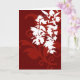 Padrão floral vermelho e branco em um cartão vermelho escuro.