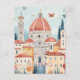 Este cartão postal oferece uma ilustração fantástica que representa a história mágica e os marcos de Florença, Itália. É um cartão postal de excelente para os viajantes que se deslocam a Florença, Itália.