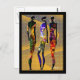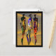 Este cartão-postal das Flores do Deserto Africano é uma na moda de mistura de moda e arte. Apresentando três silhuetas femininas elegantemente expostas em padrões pastéis brilhantes e geométricos, a design capta a estética moderna com pano de fundo do deserto. As cores ousadas e a composição elegante fazem dela uma peça impressionante e sofisticada, perfeita para colecionadores ou admiradores de arte contemporânea de inspiração africana.