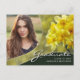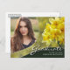 Um cartão postal de lançamento personalizado exclusivo de fotografia, com design elementos elegantes de um script de estilo manuscrito com texto moderno. A foto dos formandos é realçada por lindas flores amarelas sobre um fundo verde-florestal. O verso do cartão oferece espaços de texto personalizados para informações sobre a graduação e a viagem futura. Para ver mais itens como este, visite minha loja aqui em "www.Zazzle.com/LakeViewCardCo". Obrigados