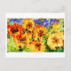 Cartão Postal Flores amarelas e laranja com céu roxo