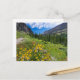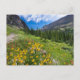 Esta incrível foto do Getty Images apresenta flores silvestres vermelhas e amarelas moldando a montanha Ptarmigan Trail no Glacier National Park, Montana.