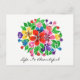 Flores de aquarela com palavras positivas "A vida é bonita". Design floral colorido e bonito criou a adicionar cores em momentos. Personalize-o com as cores de fundo, palavras ou simplesmente desfrute como está.