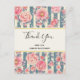 Obrigado cartão postal com um lindo padrão com flores bonito cor-de-rosa sobre um padrão listrado composto por listras azuis e creme. Um quadro retangular com uma borda falsa de folha de ouro colocada sobre cima com o seu dentro de texto personalizado.