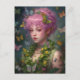 Cartão Postal Flores de Cabelo Roxo e Mulher Borboleta