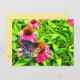 Cartão Postal Flores de Echinacea, rosa, borboletas-de-cheiro
