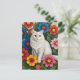 Cartão Postal Flores de Gato Branco Fluffy e de Arte Folclórica