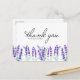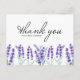Envie obrigados com este belo obrigado floral, seu cartão-postal. Apresenta ilustrações de aquarela de flor de lavanda e roteiro elegante. Personalize adicionando nomes, endereço de retorno e mensagem. Este obrigado floral roxo que você faz cartões postais são para casamentos, aniversários, graduações e muito mais.