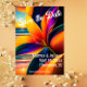 Belo Cartaz do lançamento "Salve a data" apresenta um impressão de arte sunset de praia e floral tropical brilhante e brilhante | AI cria fantasia surreal arte digital.