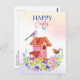 Cartão Postal Flores de primavera e felz pascoa de aves