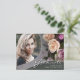 Um cartão postal de lançamento personalizado exclusivo de fotografia, com design elementos elegantes de um script de estilo manuscrito com texto moderno. A foto dos formandos é aprimorada por uma bela coleção de flores rosa de cor roxa, violeta e coral com verde-sábio. O verso do cartão oferece espaços de texto personalizados para informações sobre a graduação e a viagem futura. Para ver mais itens como este, visite minha loja aqui em "www.Zazzle.com/LakeViewCardCo". Obrigados