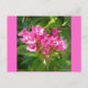 orientação horizontal, bordas cor-de-rosa à esquerda e à direita, cartão-postal, flores de trompete cor-de-rosa com mariposa castanha
