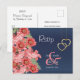 Cartão Postal Flores Douradas de Coração e Coral - RSVP
