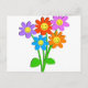 Ilustração de desenho animado fofo de um buquê de flores coloridas de margarida com rostos sorridentes felizes. Imagem disponível em vários presentes e produtos. Cartões-postais.