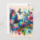 Cartão Postal Flores Florais De Borboleta De Aquarela Azul Rosa