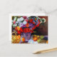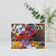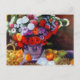Cartão postal com as flores e Frutas de pintura de óleo de vida de Claude Monet (1869). Lindas flores roxas, vermelhas, azuis, brancas, laranja e amarelas em um vaso. Maçãs, uvas e outras frutas deitam em uma mesa. Um presente de excelente para fãs do impressionismo e da arte francesa.